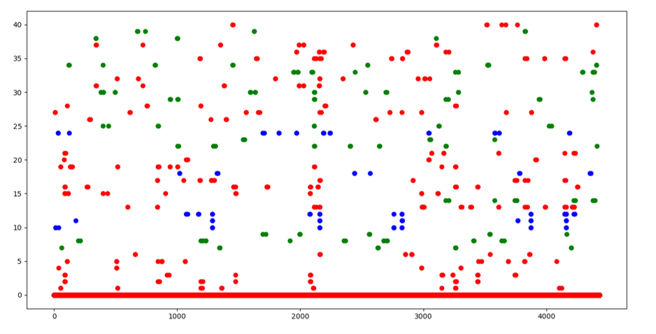Feature extraction is the most fundamental operation to generate an ML model. Since the machine does not understand text, it has to be converted into numeric values. Each sample has different values on every feature. Representing samples with different colors, feature extraction depiction is as follows: