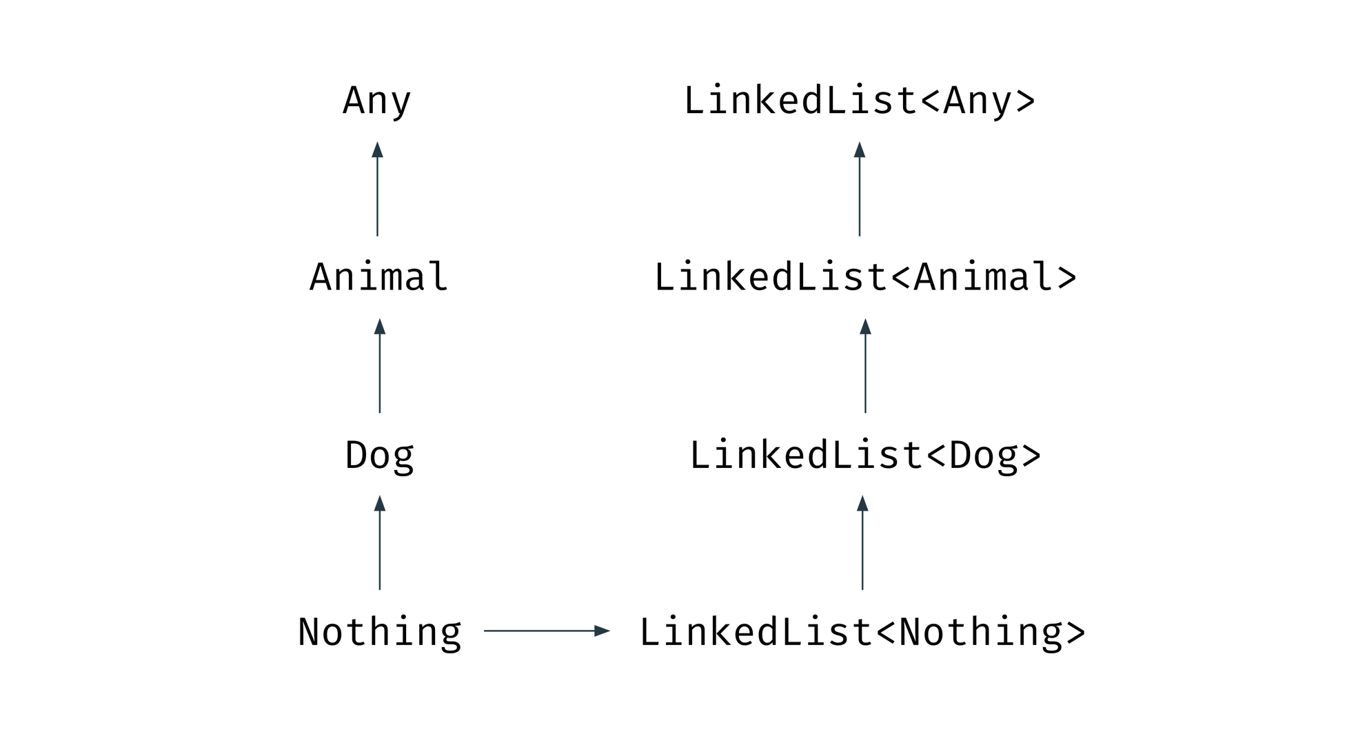 There is a solution to this problem. We can make the LinkedList type parameter covariant (by adding the out modifier’). This is perfectly fine for a type that is only returned, i.e., for all type parameters in immutable classes. Then, we should make our Empty object extend LinkedList<Nothing>. The Nothing type is a subtype of all types; so, if the LinkedList type parameter is covariant, then LinkedList<Nothing> is a subtype of all linked lists.