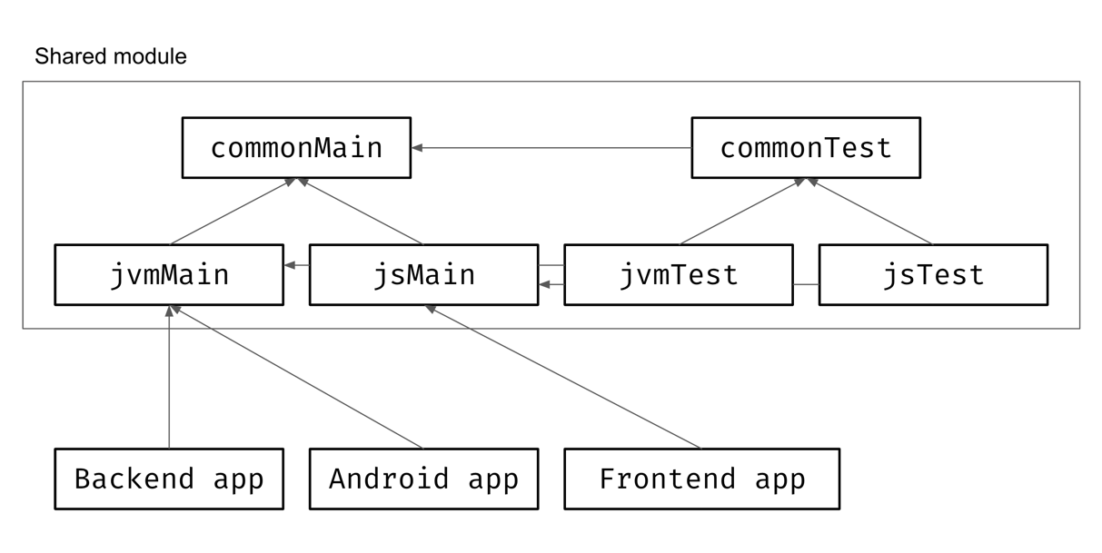- Common source set, which contains Kotlin code that is not specific to any platform, as well as declarations that don’t implement platform-dependent APIs. Common source sets can use multiplatform libraries as dependencies. By default, the common source set is called "commonMain", and its tests are located in "commonTest".