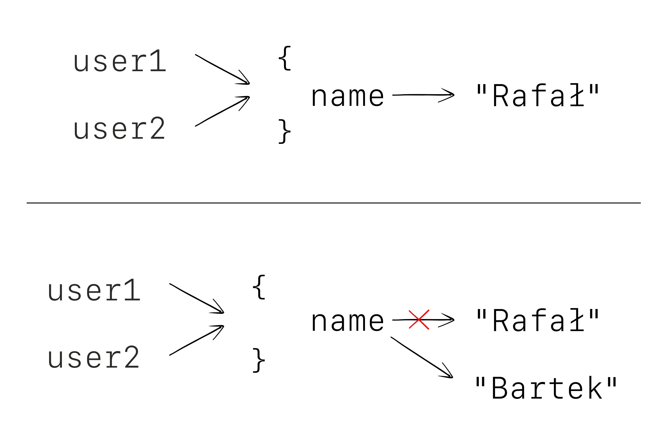 What will be printed? The answer is "Bartek". Here both user1 and user2 reference the same object, and then this object changes internally.