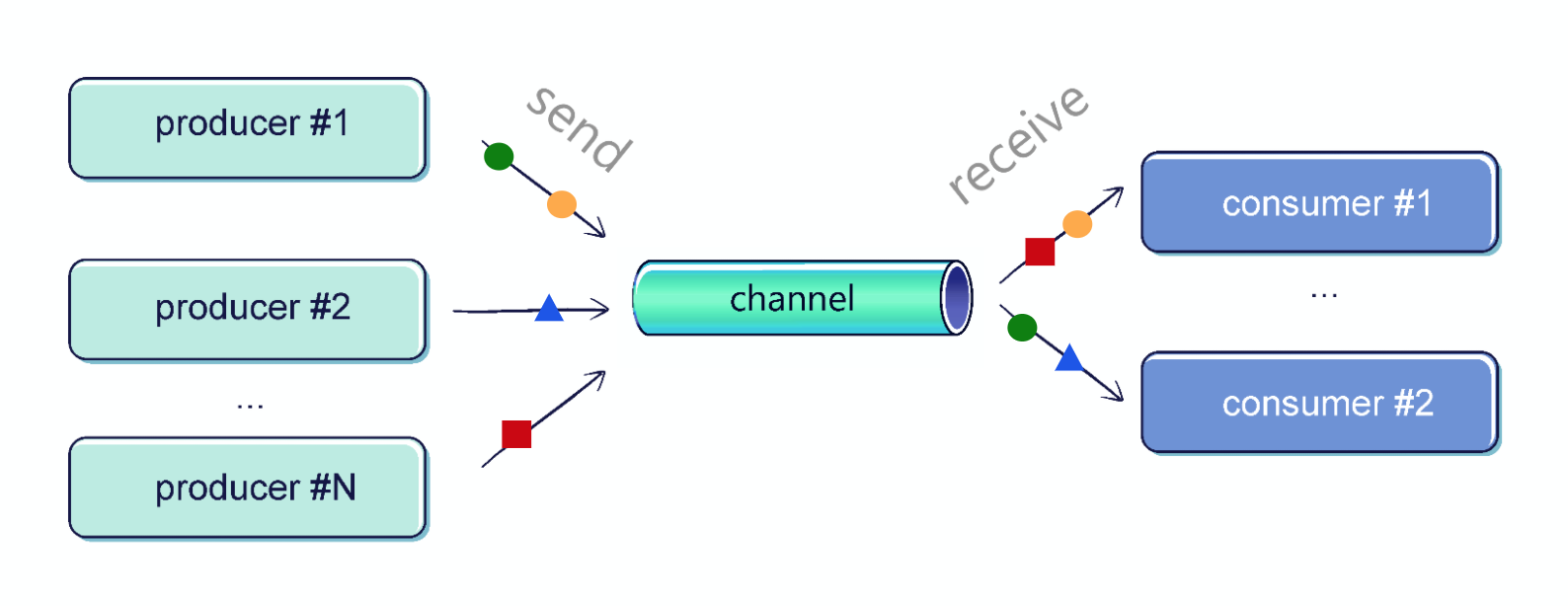 Channel supports any number of senders and receivers, and every value that is sent to a channel is received only once.