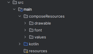 Compose supports resources, like images, icons, strings, fonts, or files. For storing them, define composeResources folder inside main. Inside it, you can define drawable folder for images and icons, font folder for fonts, and values folders (you can localize it) for strings. You can find all details about defining and using them here.