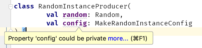 If your module might be used by another module, change the visibility of public elements that you don’t want to expose to internal. If an element is designed for inheritance and is only used in a class and subclasses, make it protected. If you use an element only in the same file or class, make it private. This convention is supported by Kotlin, which suggests restricting visibility to private if an element is used only locally:
