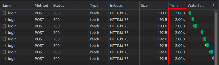 Now let’s slow down the login response so it always takes 2 seconds (for a good user-experience, maybe 2 seconds is a bit much, but bear with me here).