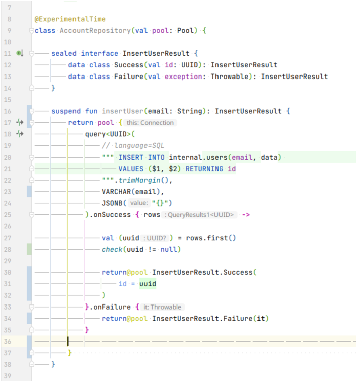 query<INT4, INT8>().forEach { (b, c, d) -> // b: INT4, c: INT8, d: ??? -> compiler error // ... }