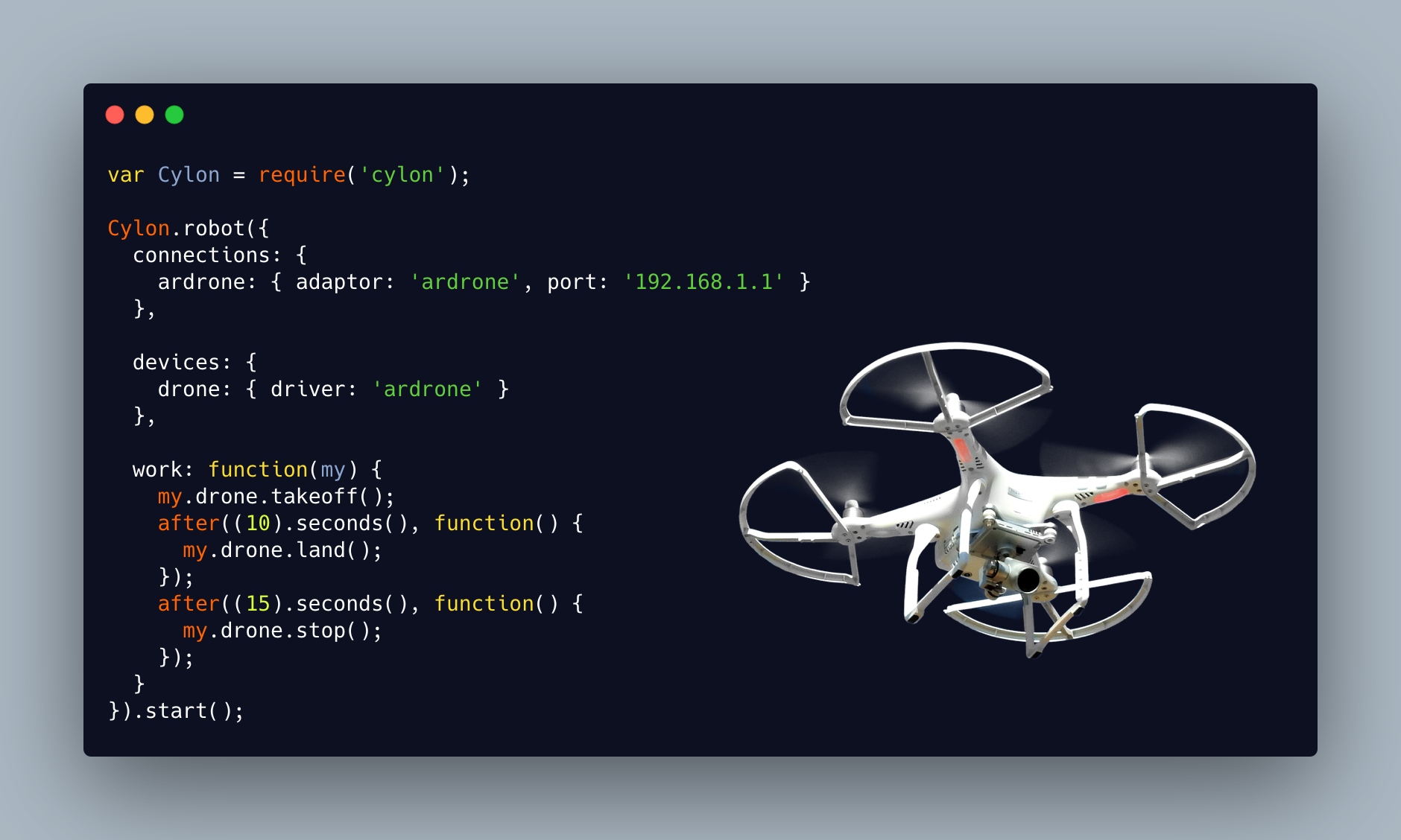 Dwa popularne rozwiązania to Johnny-Five oraz cylon.js. Pasjonaci najczęściej oprogramowują płytki Arduino, do których montuje się czujki, diody czy serwomotory. Coraz popularniejsze staje się też pisanie oprogramowania dla dronów czy zestawy do składania robotów, które następnie się oprogramowuje.
