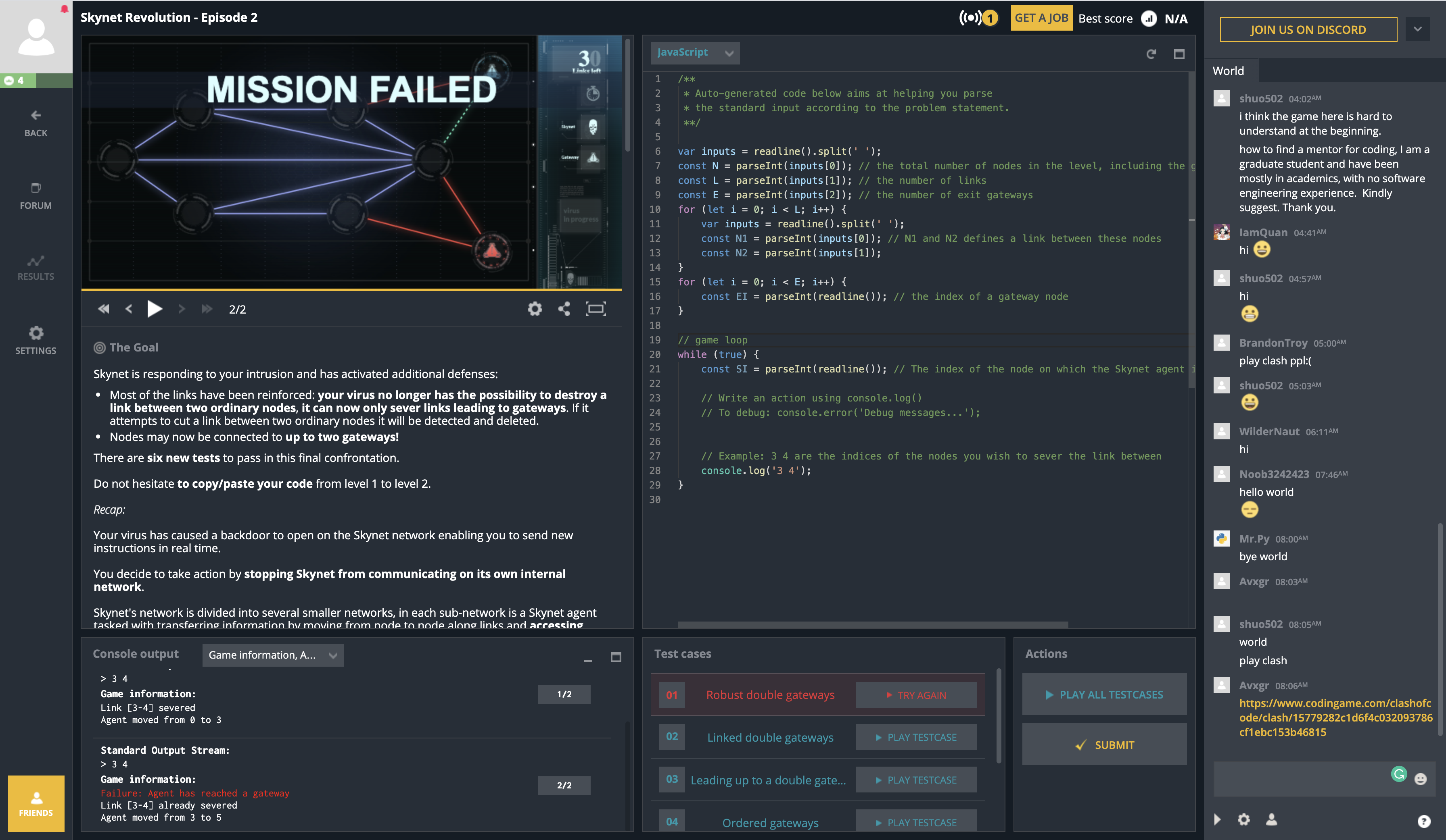 Zrzut ekranu z gry CodinGame.