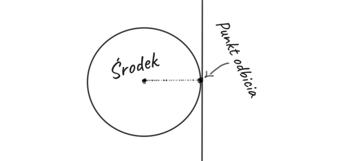 Założymy, że interesuje nas tylko proste odbicie poziome (prawo-lewo). Aby takie nastąpiło, piłeczka musi dotknąć paletki prawym lub lewym skrajem. To zaś następuje, gdy jej środek znajdzie się na wysokości paletki.
