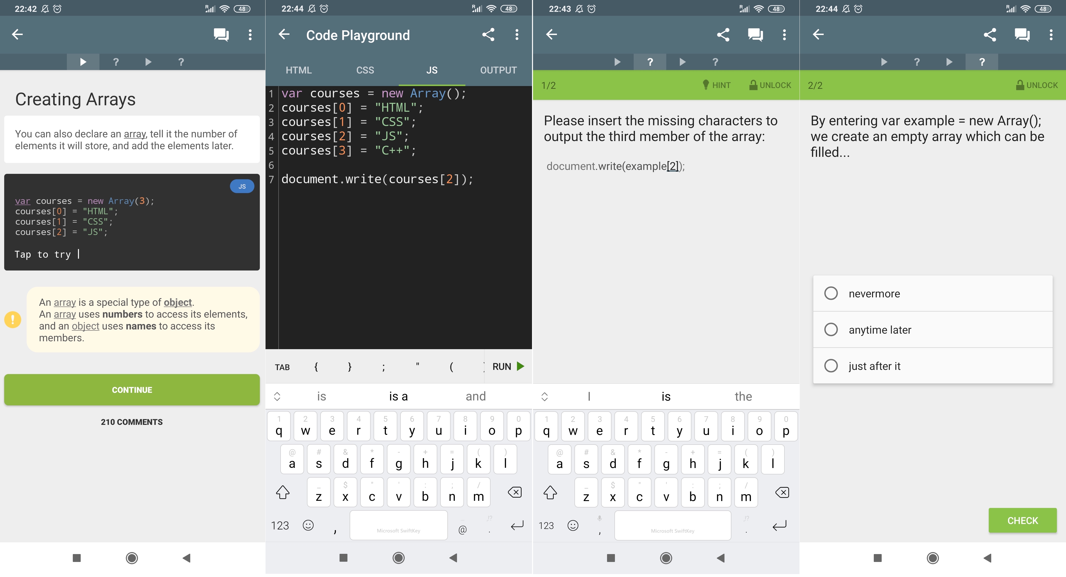 SoloLearn to aplikacja do nauki różnych języków programowania na telefonie. Cenię ją za solidne, dobrze skonstruowane lekcje. Każda z nich składa się naprzemiennie z teorii oraz wyzwań. Dostarcza także playground, czyli miejsce, gdzie na telefonie możesz edytować i uruchamiać kod. Wizualnie nie należy może do najpiękniejszych, ale wygląd przecież nie jest najważniejszy.