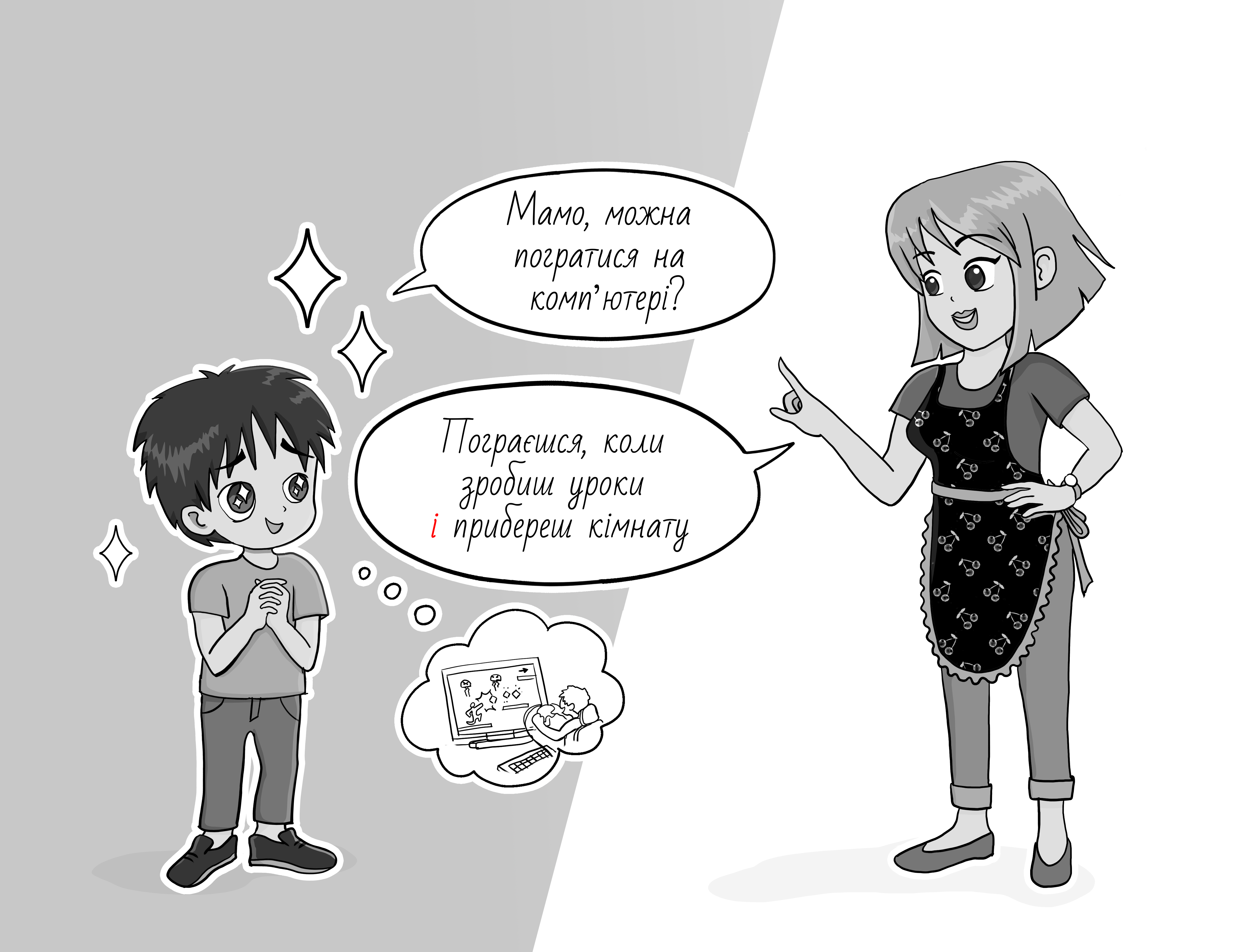 Щоб добре пояснити логічні оператори, наведу історію маленького Мишка. Він хотів погратися на своєму комп’ютері, тож пішов до мами, щоб запитати дозволу. Вона сказала: "Ти зможеш погратися, коли зробиш домашнє завдання і прибереш кімнату".