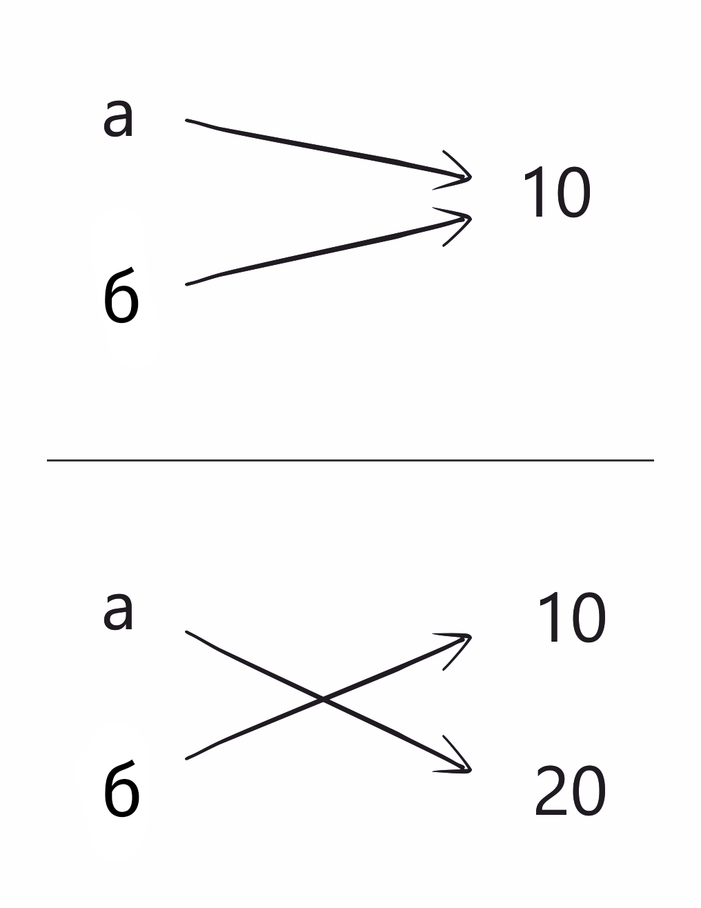 a = 10 b = a a = 20 print(b) # 10, # оскільки b вказує на значення 10, а не на змінну print(a) # 20